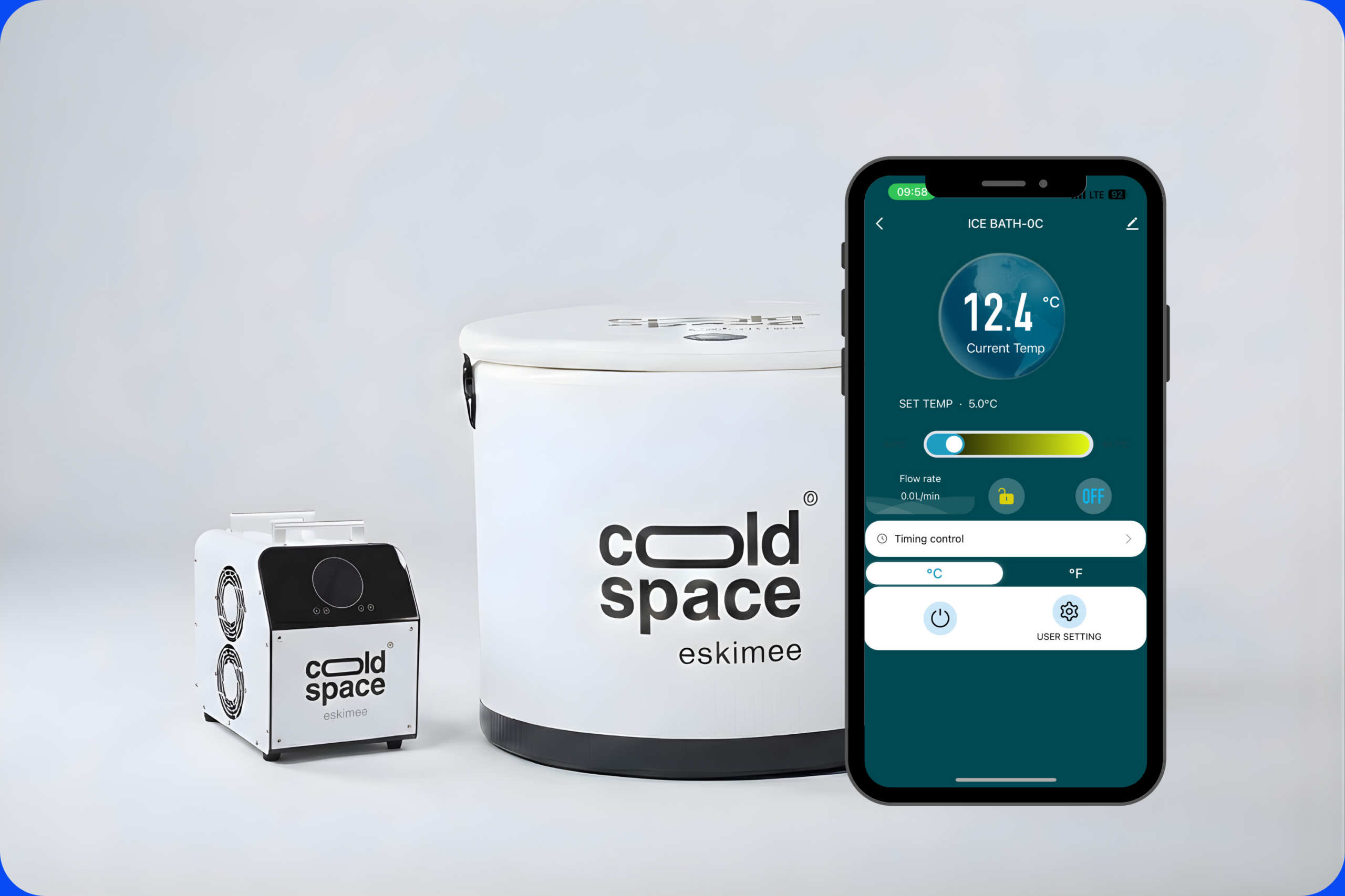 Eskimee one to mobilna beczka do zimnych kąpieli z chillerem, stworzona do regularnego i wygodnego korzystania z zimna. Wersja z mini chillerem PLUS oferuje większą wydajność chłodzenia i stabilną temperaturę wody, także przy częstym użytkowaniu.